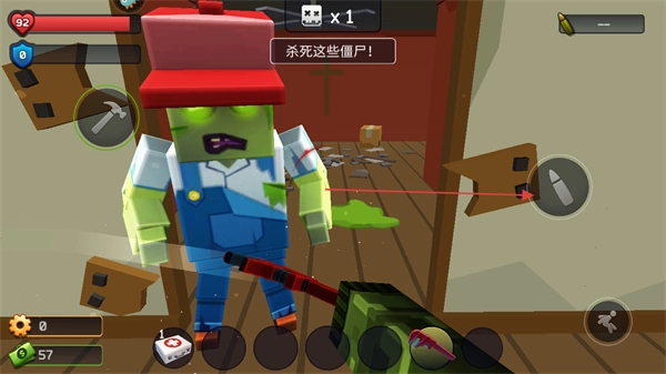 当僵尸入侵时,拿起武器向它们发起攻击,直至将所有僵尸都消灭干净。