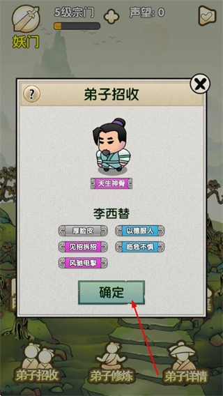 弟子身具“天生神骨”这类稀有天赋,还掌握着“厚脸皮”“风驰电掣”等丰富技能,每一位弟子都有着独特的特质。玩家能够依据弟子的天赋与技能,规划各异的培养路径,构建出具有个性化的弟子阵容。