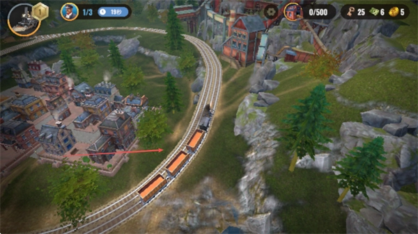 控制火车在铁轨上运行,运送物资或旅客,按照任务提示(如绿色箭头指示)来规划行驶路线。