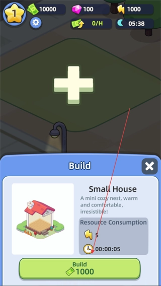 进入开心市民游戏后,点击带有加号的空地。