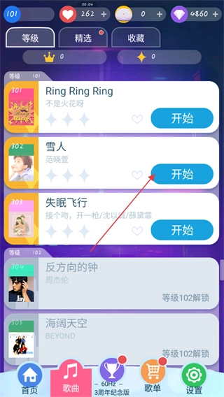 在下方菜单栏点击“歌曲”选项,跳转至对应页面后即可选择歌曲发起挑战。