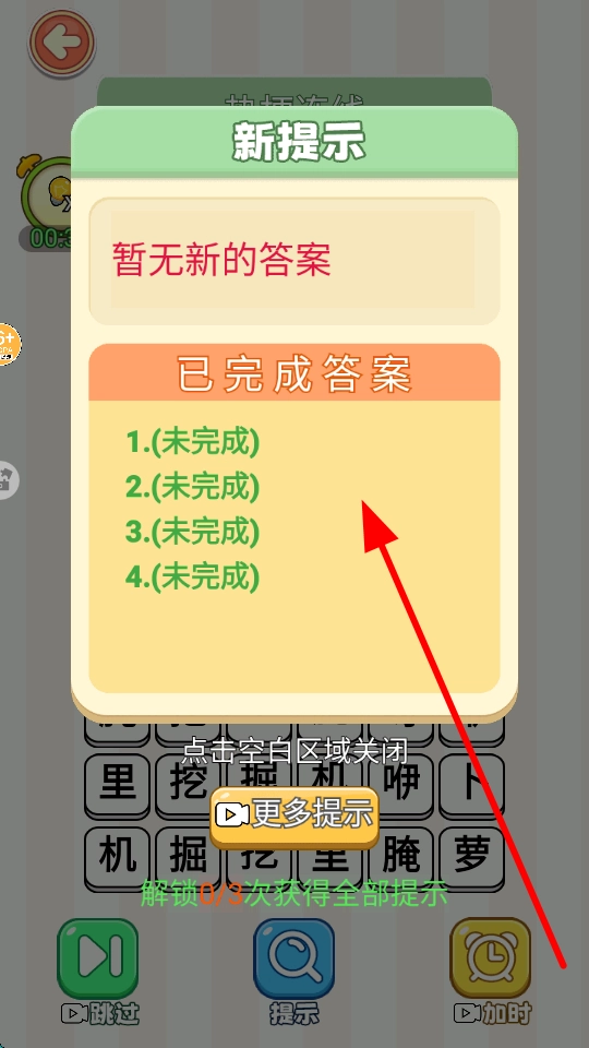 当解谜过程中时间不够用的时候,你可以点击加时按钮来延长可用时间,这样就能拥有更充裕的思考时长,防止因为时间不足而让解谜进程被迫中断。