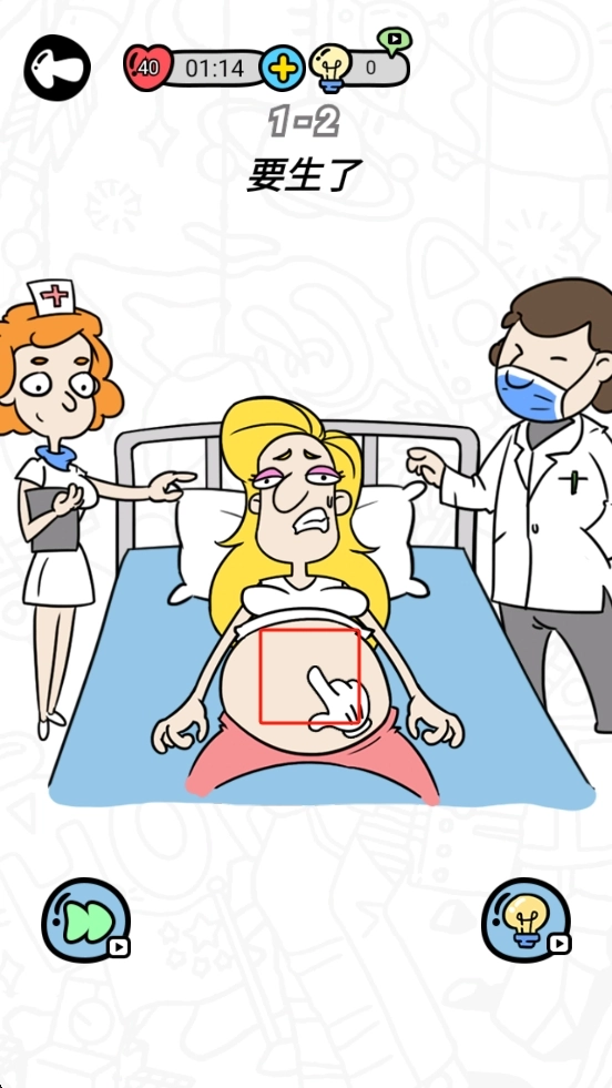 这里孕妇的肚子上有清晰的图案,点击这个图案,即可触发与接生相关的互动环节,借助这一操作便能完成本场景的解谜。