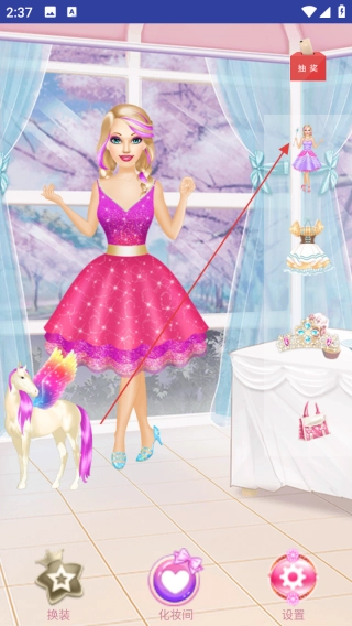 你可以通过“抽奖”功能来获取新的服饰,然后在“换装”界面更换自己的造型,另外也能前往“商店”解锁更多的服装。