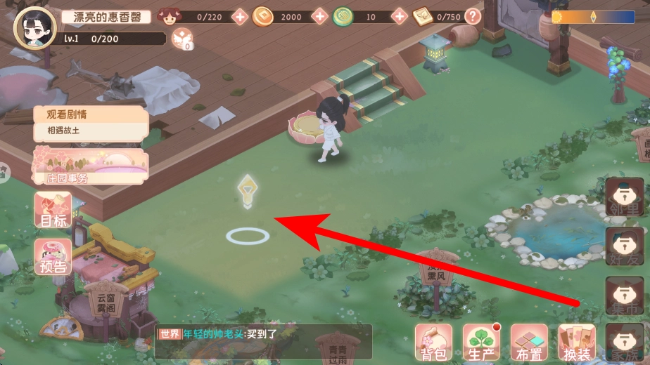 玩家可借助鼠标移动来操控角色在庄园内活动,遵循箭头指示的方向行进,即可抵达各个不同区域,便于开展后续的生产、任务等相关操作,助力角色在庄园中灵活穿梭。