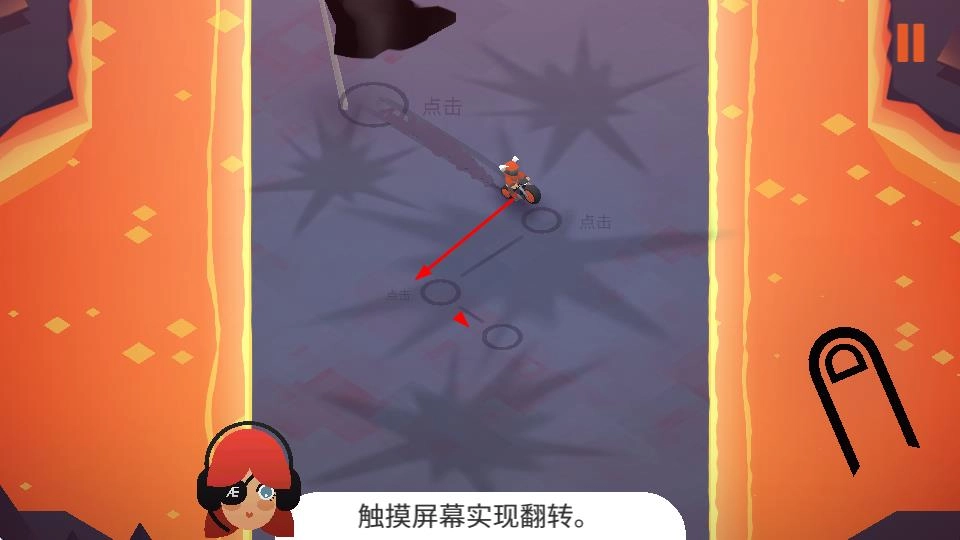 通过触摸屏幕来让摩托车完成翻转动作,同时灵活地操控车辆,这是在场景里移动时至关重要的操作,借助它开启精彩的冒险旅程。