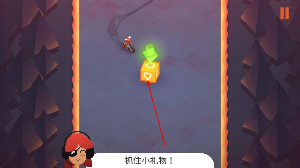 把目标锁定在带有绿色标识的小礼物上,操控摩托车去抓取它,这样就能获得游戏奖励,为接下来的游戏进程提供帮助。
