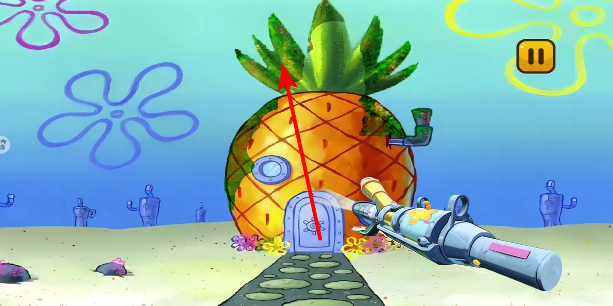 进入关卡选择界面后,系统会自动加载第一关的场景,这时能清楚看到带有污渍的菠萝屋,它正等待着被清理,我们的菠萝屋清洁挑战之旅也由此正式开启。