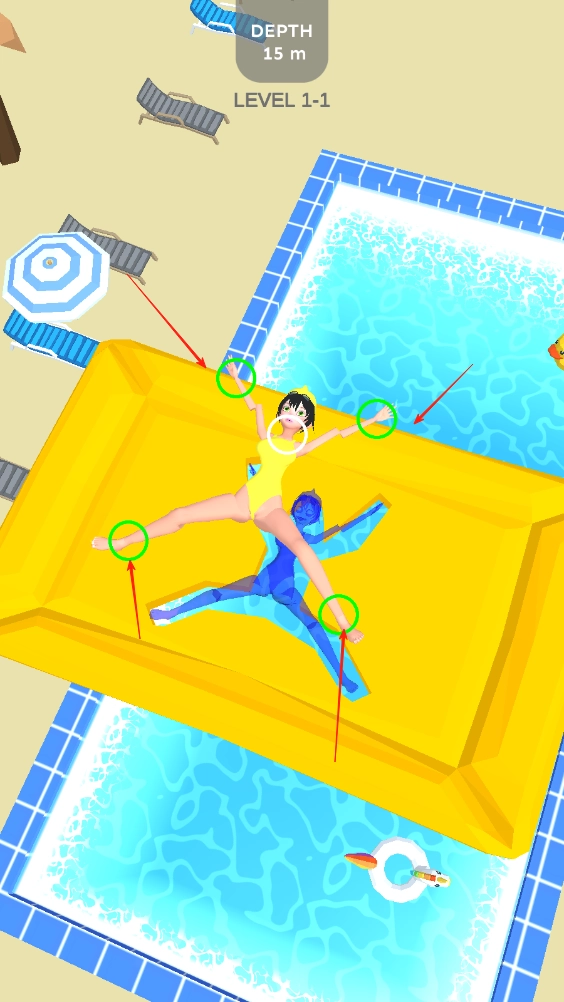空降姿势控制是游戏的核心操作方式:从不同高度跳下时,你可以通过操作调整身体姿势,摆出各种魔性造型,还能控制落水角度,尽情享受自由发挥的乐趣。
