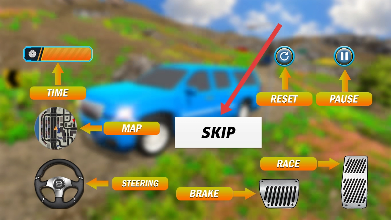 进入游戏界面后,你可以点击SKIP按钮跳过游戏指引,也可以先熟悉操作功能区域,之后再开启赛车挑战。