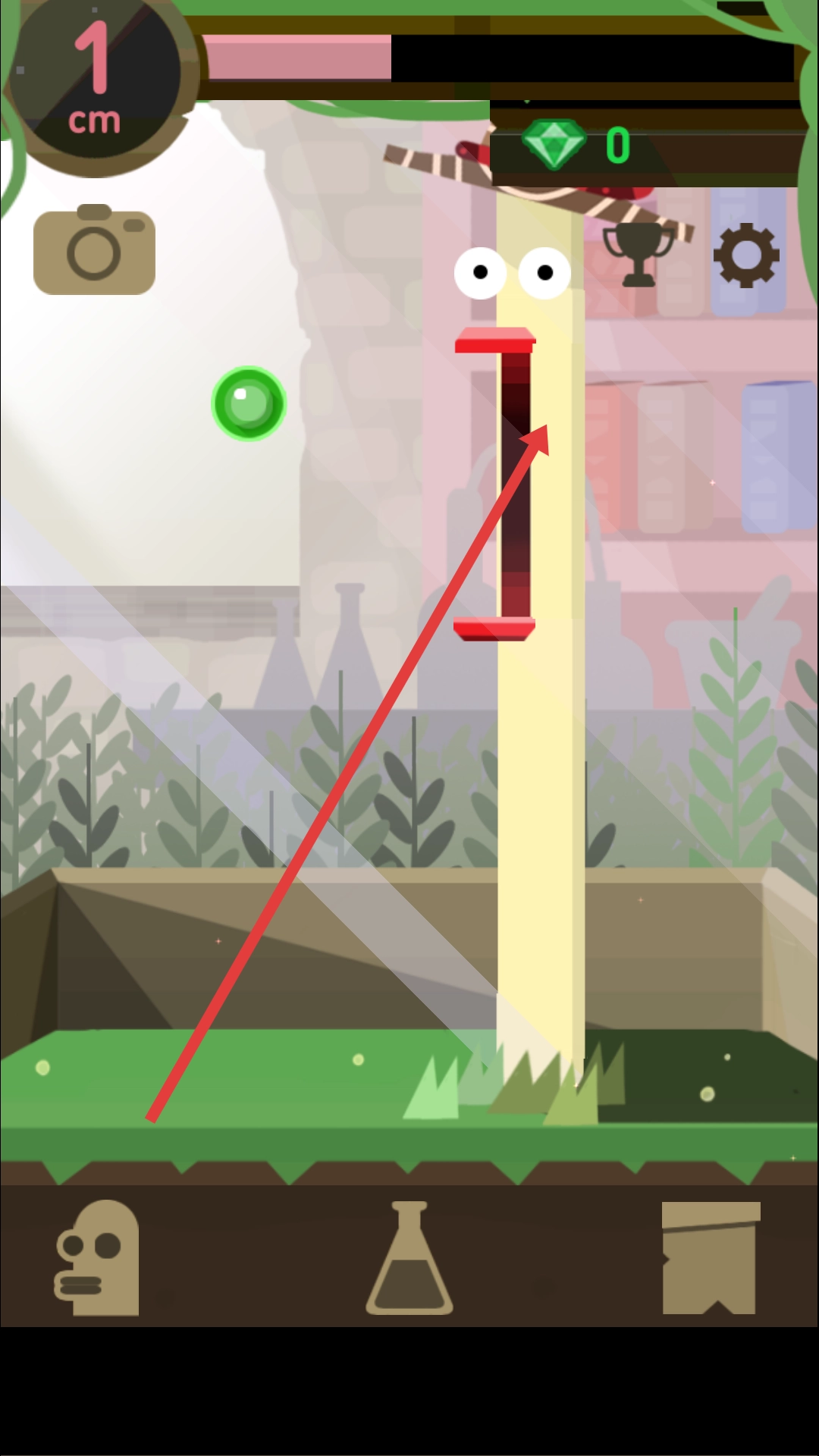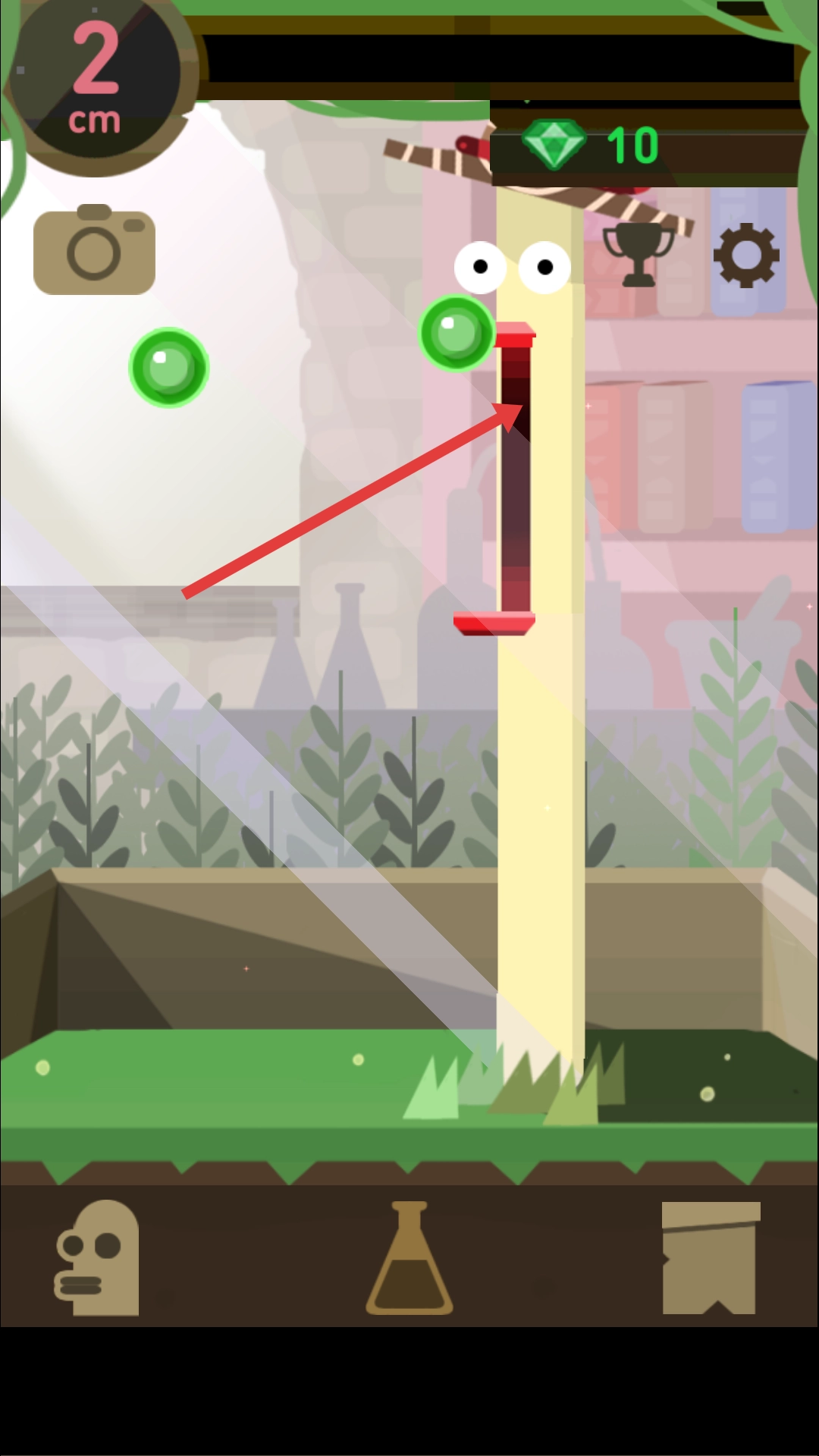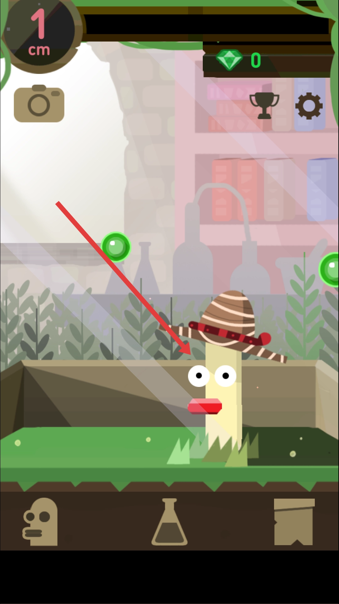 进入游戏后,你可以操控角色伸展身体,尽量去收集场景里的绿色泡泡之类的道具,收集这些道具就能得到钻石等奖励。