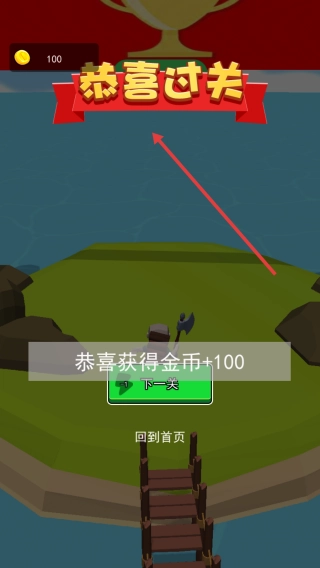 当界面上出现“过关”的提示文字时,会展示所获得的奖励等相关信息,此时可以选择进入下一关继续进行挑战,也可以选择回到首页重新挑选关卡。