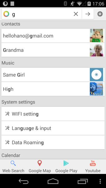 Search Now 现在搜索:搜索的网页和你的设备上的多任务处理方式。立即搜索会给你一个新的多任务处理体验,它会显示在你的屏幕顶部的搜索按钮,触摸它,开始搜寻,但不退出当前的应用程序。