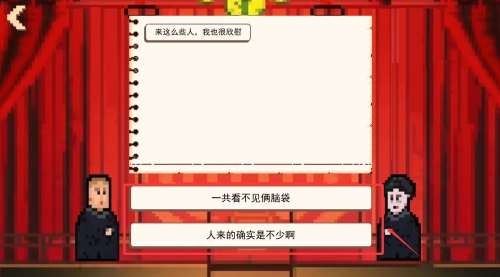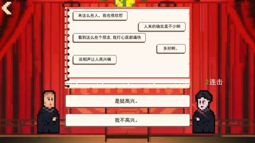 多分支的剧情架构中,选择不同的“现挂”进行即兴发挥,会引导出完全不同的表演呈现——有的能收获全场喝彩,有的或许会造成冷场局面,让观众切实体会到相声演员在舞台上的临场压力。
