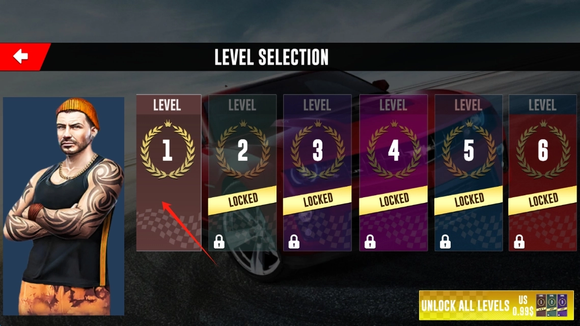 进入选关界面,解锁新关卡,驾驶赛车,体验不同赛道。