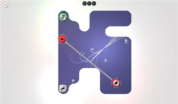 离子键的背景舞台是在一个形状各异的狭小空间里,这里面有很多标有“+”“-”电荷的离子,并且它们的颜色也不同。玩家需要做的是,把相同颜色但电荷不同的两个离子之间建立一条连线,让他们通过吸引力缓缓靠近,然后湮灭。同样的道理,如果想湮灭所有的离子,就需要利用“同极相斥”的原理,把相同电极的原子们推到合适的位置,然后各自找到自己的归宿原子。这是一个非常需要动脑筋的游戏,连线的不同会导致各种情况的发生。