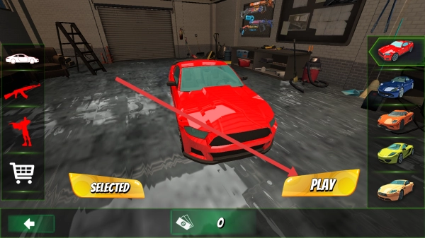 挑选红色的载具,点击【PLAY】按钮进入游戏,选择要驾驶的车辆,在城市里完成各项任务,以此推动游戏的进度。