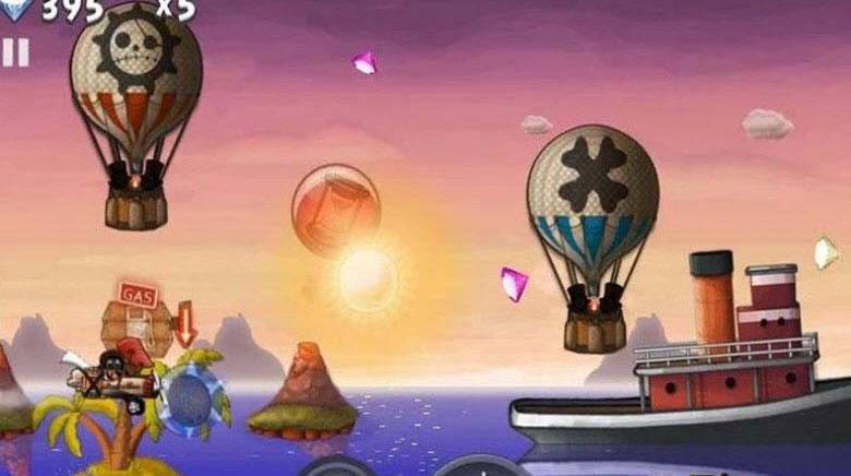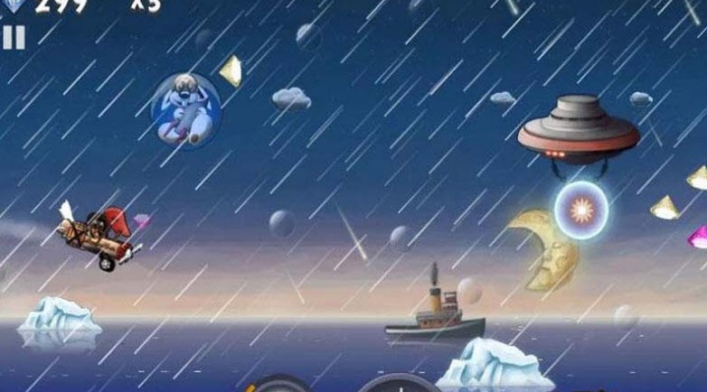 王牌传说游戏中我们需要控制一架飞机飞越太平洋,途中有许多宝石可以收集哦,这可是让我们购买道具和升级技能的货币啊,多多收集吧。每收集10个小宝石,就会合成一颗大宝石,集齐5颗大宝石就可以获得一次无敌的机会哦,撞上任何障碍物都不会死,而且还会向前冲一段距离呢。王牌传说安卓版游戏中的飞机不是无限汽油,中途需要自己加油,经过如图加油站后的圆圈,即可加一格油,屏幕下方有个油表,根据自己的需要判断加油的时机吧。游戏中我们还会获得一些随机盒子,这些盒子在结算时会自动打开,随机获得一些道具奖励哦。