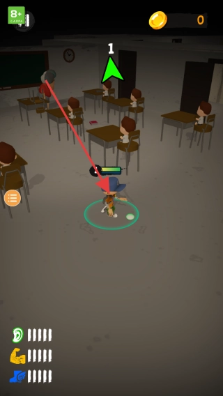 按照绿色箭头的提示来操控角色移动,注意避开老师的视线范围。借助下方的跑步、力量等技能,一步步完成任务要求,朝着逃离当前楼层的目标逐步推进。