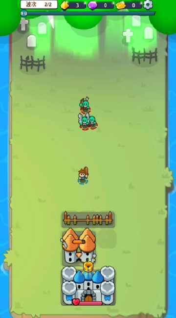 进入游戏后,先搭建炮台,再把相同的炮台合并起来提升攻击力,以此来抵挡敌人一波接一波的进攻。