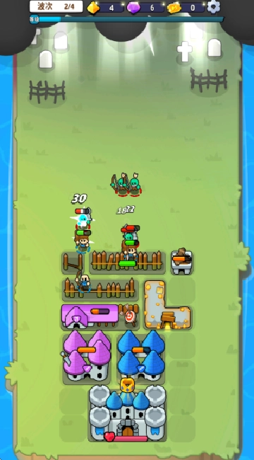 合理布置炮台,构筑坚固的防御栅栏,抵御敌人的进攻,我方士兵数量在逐步增加。