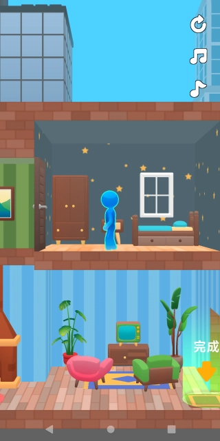倾斜控制重力场:借助滑动屏幕或虚拟按键来调整房屋的三维角度,凭借重力的自然牵引作用引导火柴人的移动路径,从而精准规划其行进路线。