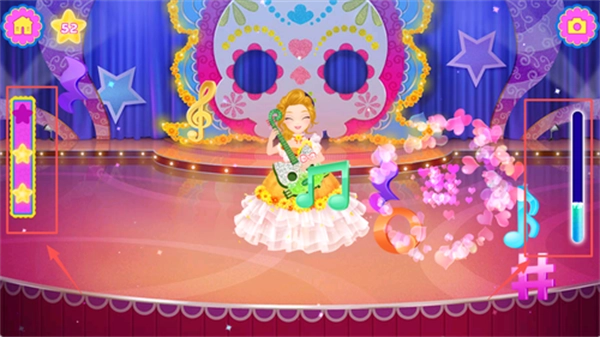 在特定关卡里能够收集星星奖励,攒够一定数量就能解锁新的演出服装以及精美的首饰配件。