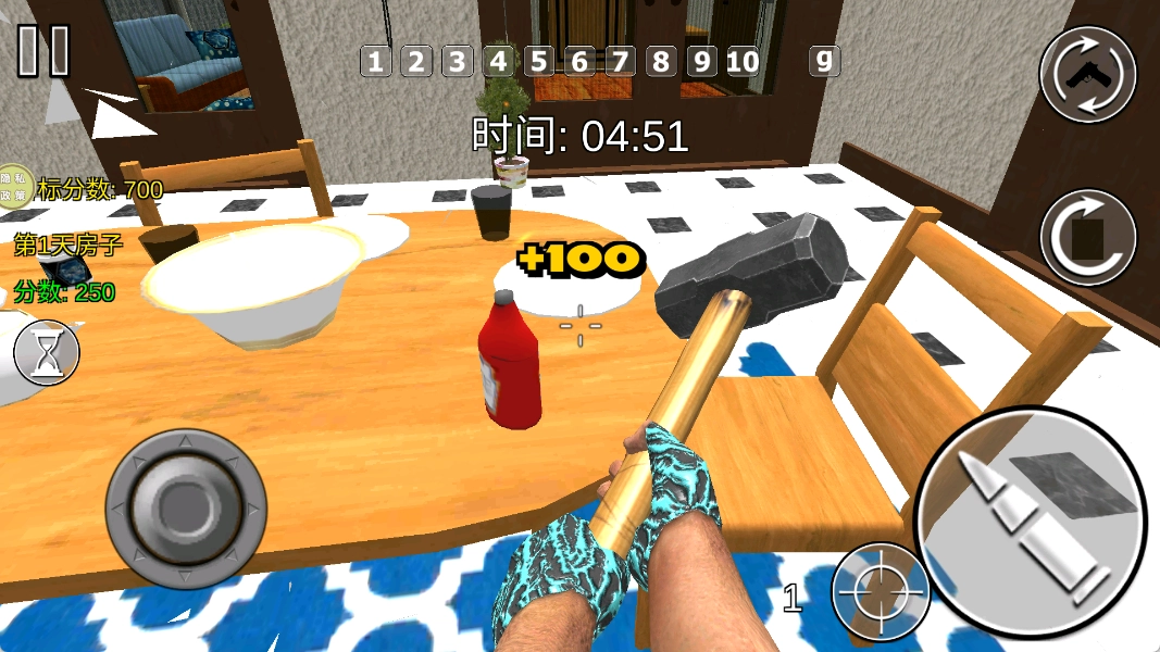 破坏不同的物体能得到不同分值,当分数满足任务要求时,就能获取奖励,进而解锁更多高级武器。