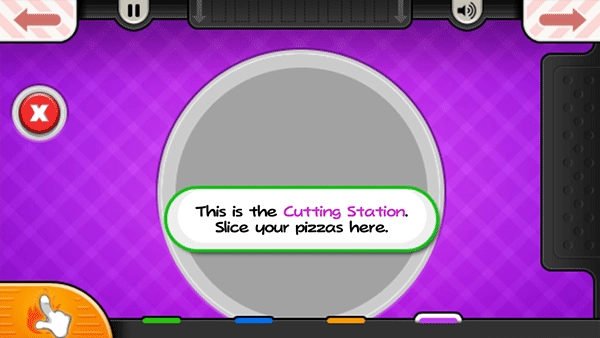 烘焙结束后,玩家得把披萨从烤箱里拿出来,然后切割它。