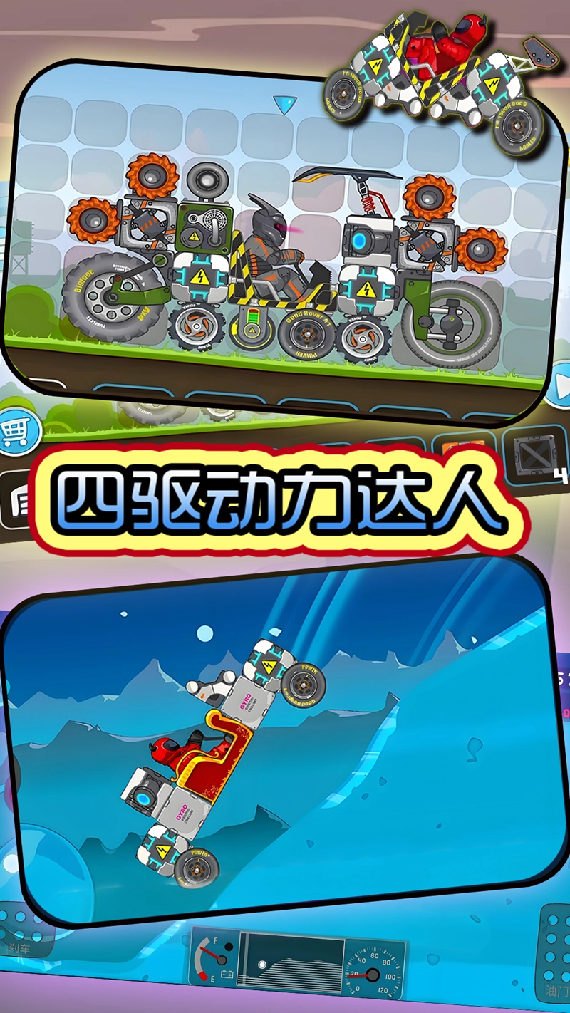 《四驱动力达人》是一款充满创意的汽车建造类游戏,玩家将踏入疯狂的太空赛车世界,在遥远行星的山丘间展开冒险。在这里,你可以自由组装漫游车,从车轮到动力模块,亲手打造专属的个性赛车。驾驶它驰骋于多样地形之上,翻越起伏的山丘、穿越险峻的峡谷,挑战丰富的关卡与刺激的无尽模式。通过精准操控赛车,收集散落在行星各处的金币,解锁全新的部件与赛车,在狂热的竞速过程中,尽情体验从亲手建造到闯关挑战的完整乐趣,向着终点全力冲刺吧!