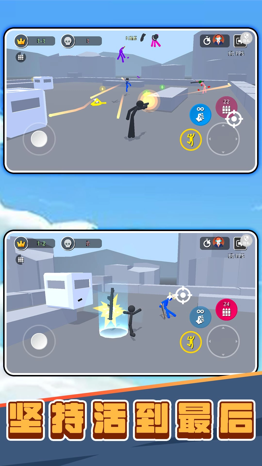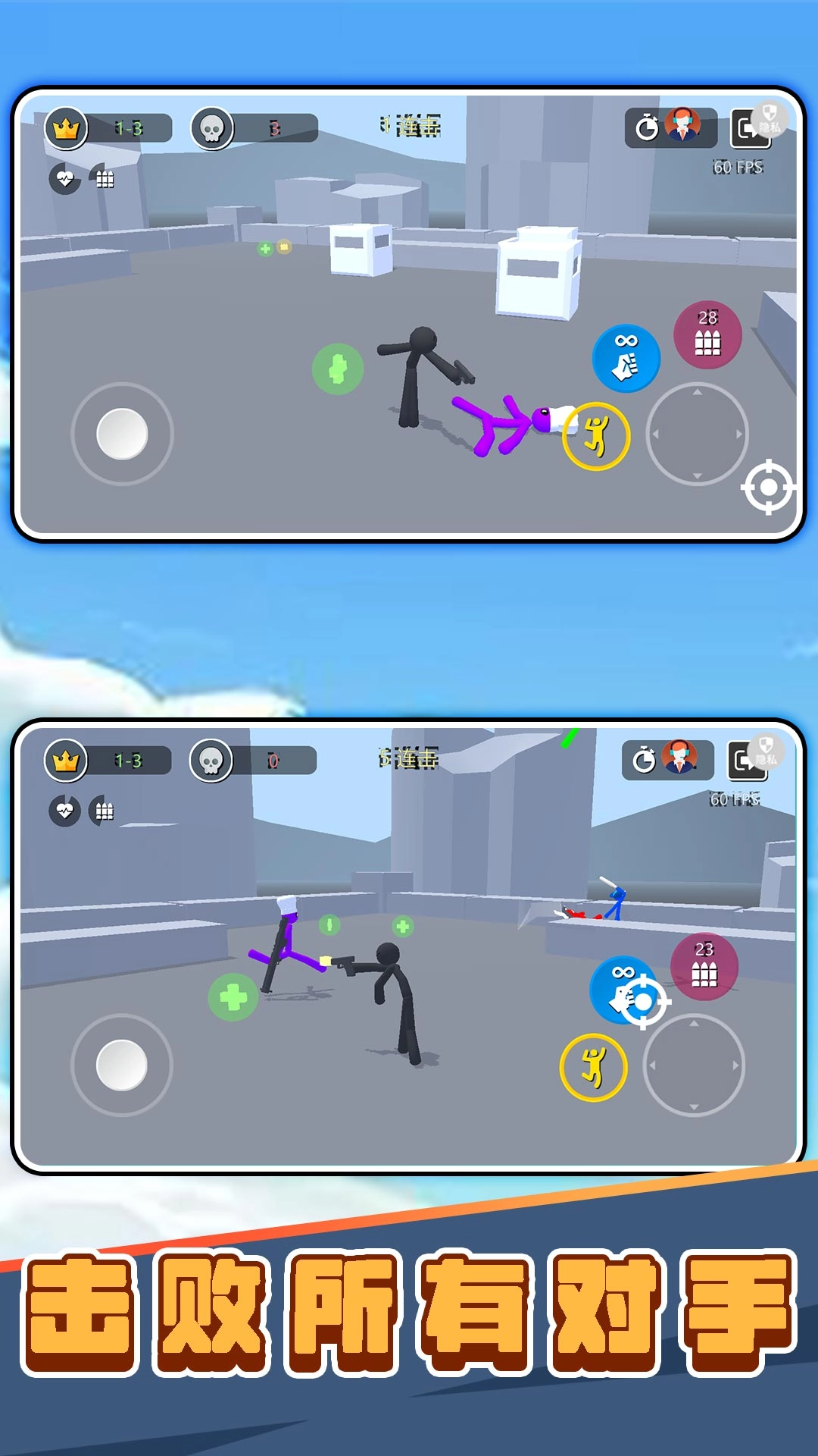 《火柴人斗斗乐》是一款以火柴人为主角的冒险格斗游戏,简约的角色形象与热血的战斗场面相互碰撞。在充满创意的战场上,玩家将操控火柴人,运用各式武器与独特技能展开激烈对战,一路闯过重重难关,对敌人发起无情打击。游戏中,玩家需要凭借策略存活到最后,解锁全新装备,尽情体验刺激十足的火柴人对决。