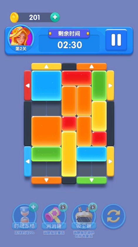 游戏氛围十分轻松,轻快的音效与之搭配,能让玩家放松心情迎接挑战,在彩色方块的世界里尽情思考、享受闯关的乐趣。