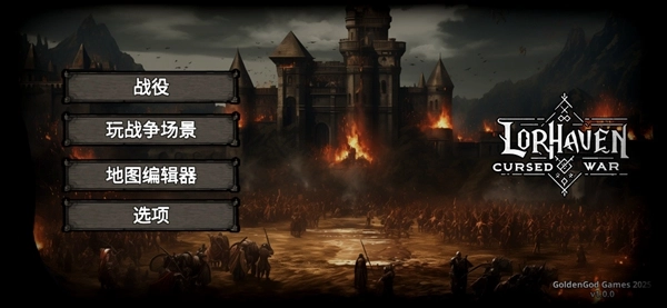 进入游戏后,游戏界面提供了战役、战争场景游玩、地图编辑器、选项设置等多种功能选项。