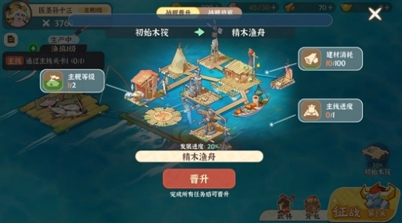 升级需要完成所有晋升任务,建议优先建造消耗(10/100建材)的项目来提升发展速度。
