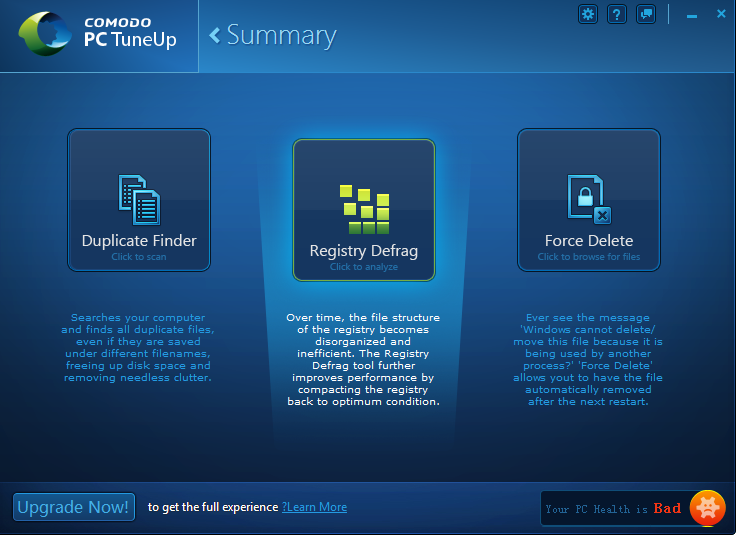Comodo PC TuneUp 是一款深度清理系统的工具,采用了最新的SafeDelete技术,可以完整地恢复误删的任何文件,降低在清理系统误删文件的风险。深度清理电脑,彻底清除占用磁盘空间的无效文件。这一突破性的功能应用到CSU的各个方面:注册表清理,磁盘清理,隐私清除和重复文件的查找。用户还可以进入Windows自定义选项菜单,可以自定义运行系统。【功能特色】