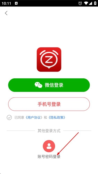 3、进入登录方式页面后,选择账号密码登录选项,即可跳转至账号密码登录页面。