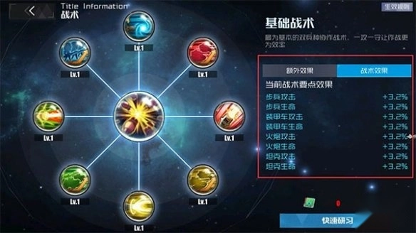 除了常见的前排肉盾、后排输出的布阵方式外,当司令部等级提升至12级时,将解锁【战术】布阵功能。按照战术规则激活相应阵型后,即可获得额外的属性加成效果。