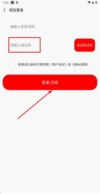 3、在验证码输入框中填入收到的验证码,点击登录按钮以完成账号登录流程。
