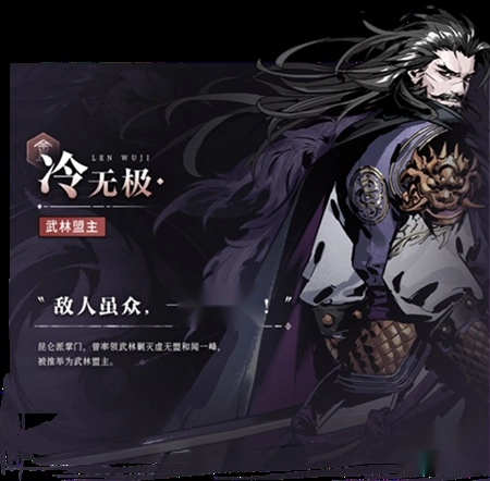 冷无极:昆仑派掌门,曾率领武林剿灭虚无盟,因闻一峰被推举为武林盟主。