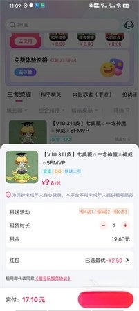 打开软件后,挑选出你打算租用的游戏账号,接着点击“租用”按钮。