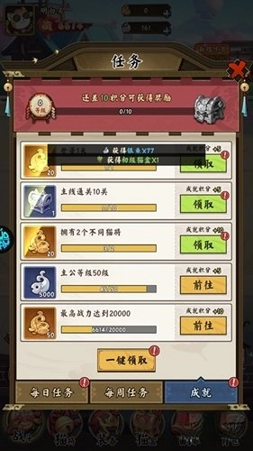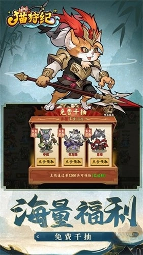 猫狩纪这款策略卡牌游戏十分有趣,它巧妙融合了经典的三国名将与Q版猫咪形象,营造出独特的反差萌;而且玩家完成指定任务后,还能免费领取千抽福利,轻松获取稀有武将。