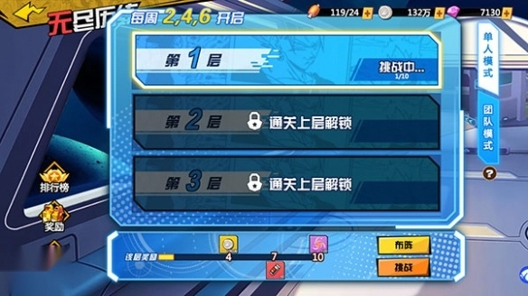 模式分类:副本分为单人模式与团队模式,单人模式于每周2、4、6开启,团队模式则在每周1、3、5、7开启。