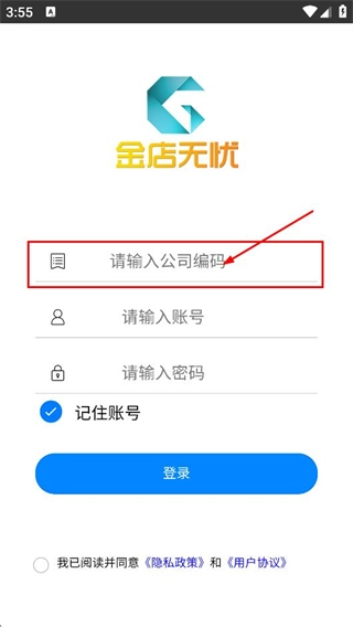 在金店无忧的登录页面,把对应的信息填写到“请输入公司编码”这个输入框里。