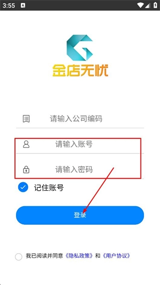 在登录页面,依次填写账号和密码,随后点击登录按钮,即可完成金店无忧的账号登录操作。