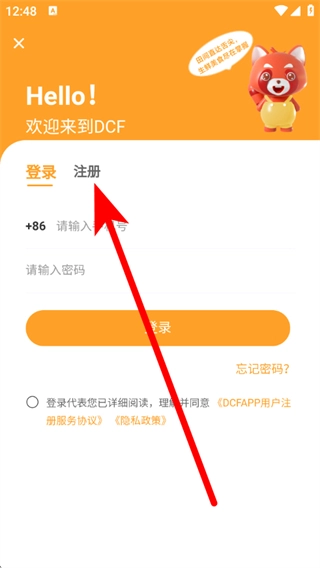 3、在欢迎界面,点击注册选项,进入注册页面。