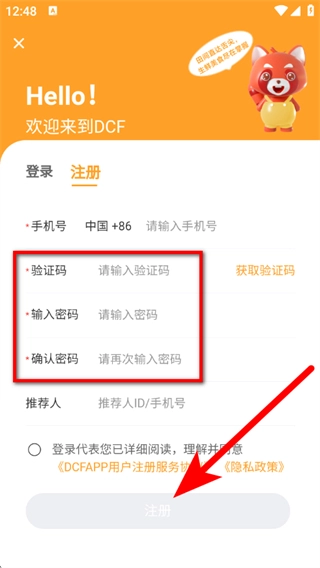 5、填写验证码并设置密码,勾选相关协议后,点击注册按钮,即可完成注册流程。