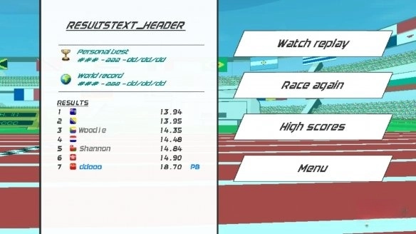 当运动员冲过终点后,游戏会显示最终的比赛成绩。