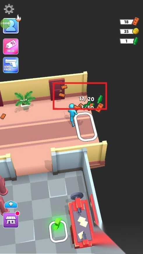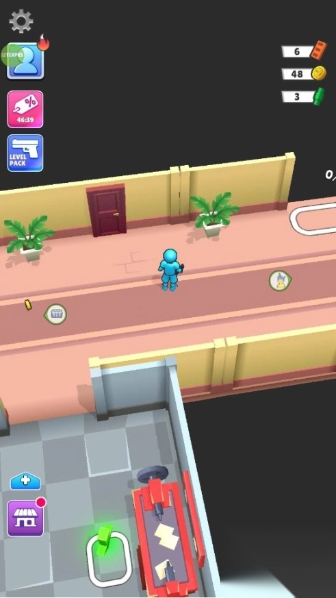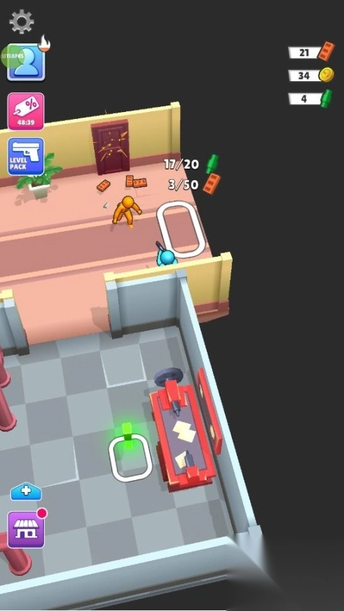 打开步行者攻击游戏,按住屏幕操控角色在房间里奔跑,角色会自动向从四面八方涌来的敌人射击