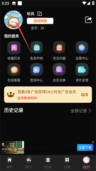2、在个人中心页面点击头像区域,进入登录页面。
