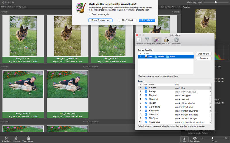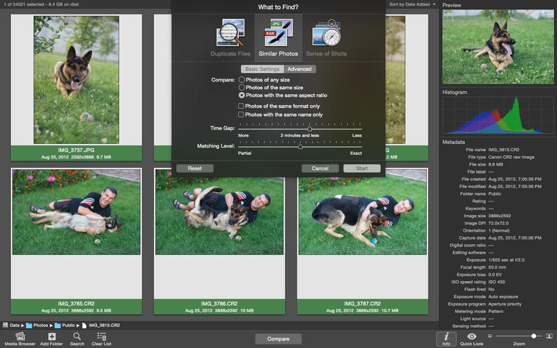用户友好的比较设置很容易找到重复的,类似的照片,系列镜头